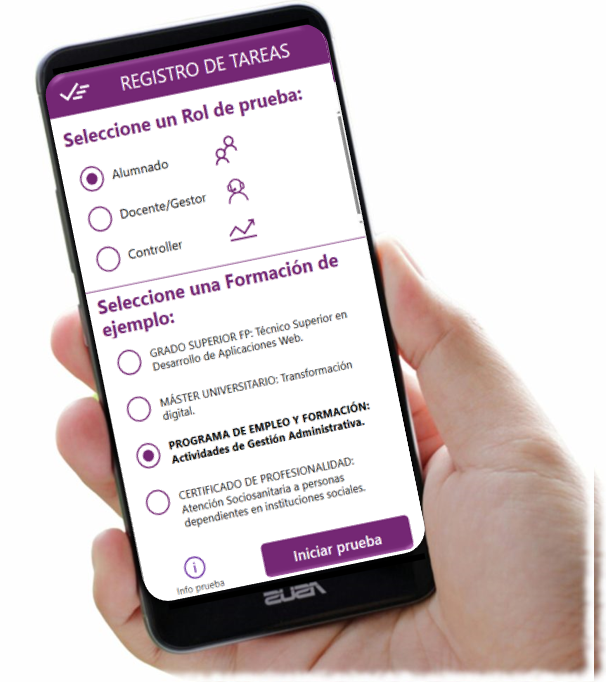 Una licencia temporal de usuario de nivel 1 para acceso como ‘alumnado‘ a la aplicación SOLNEC-APP Registro de Tareas.